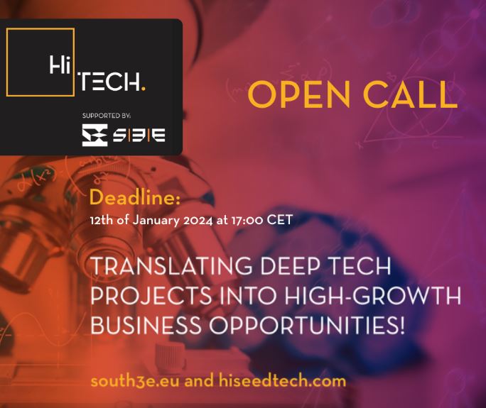 The HiTech/S3E Start second call for applications is open until the 12th of January 2024 at 17:00 CET.